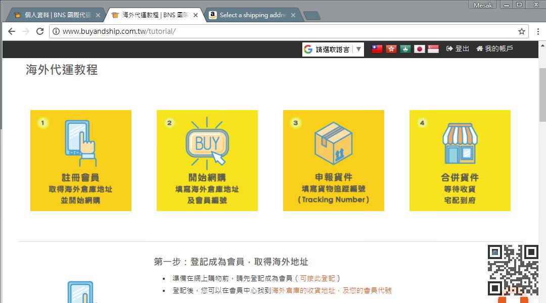 首頁有簡單的代運教學,註冊、取得集貨倉地址,購買產品,合併貨件,申報並寄送回台