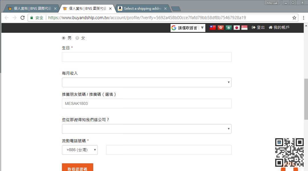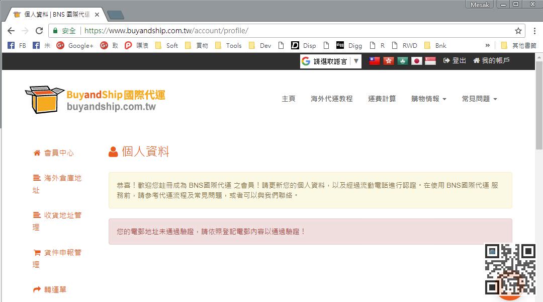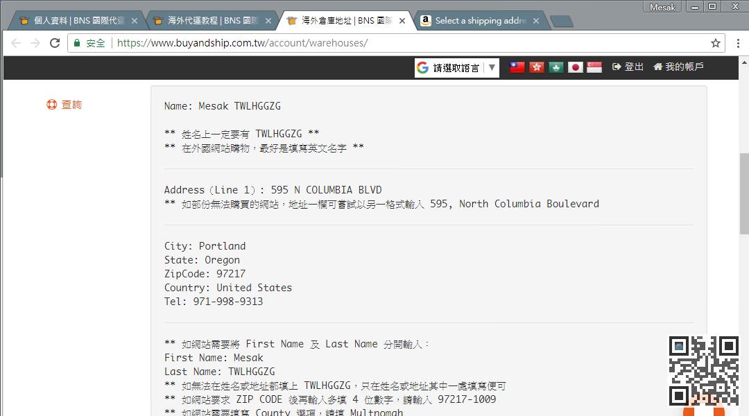如果確定要下單,要先建立個人的收貨的地址,這邊要切換回 Buyandship 網站,查看海外倉庫的地址。