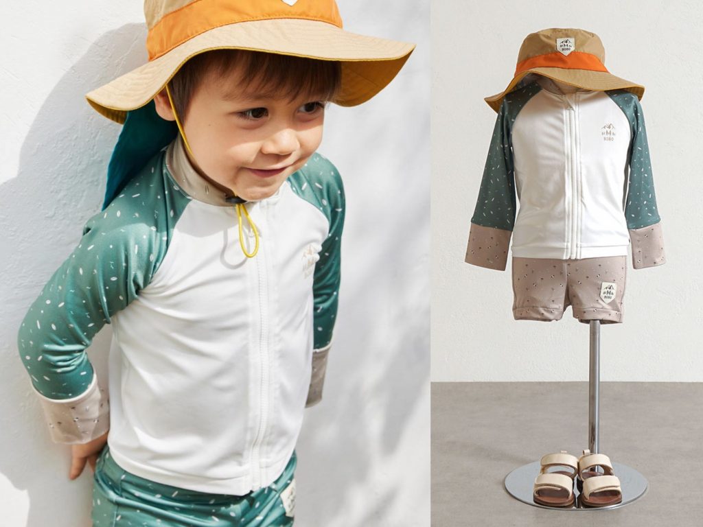 夏日出遊必備!這款防曬衫泳衣椰子樹、船隻和海鷗的圖案設計,胸前印有BOBO標誌,材質輕便易乾,紫外線遮蔽率高達94%,伸縮自如,適合各種水上活動,避免日曬!另有女童款式。