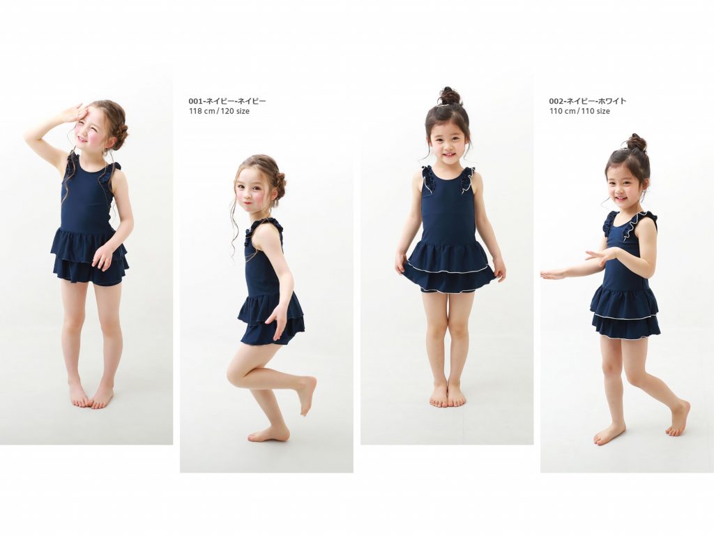 帶有可愛的花邊設計,分體設計方便濕身後輕鬆穿脫,底部配有兩段式調節按鈕,可調整長度。材質採用具90%以上紫外線遮蔽率的柔軟聚酯纖維。