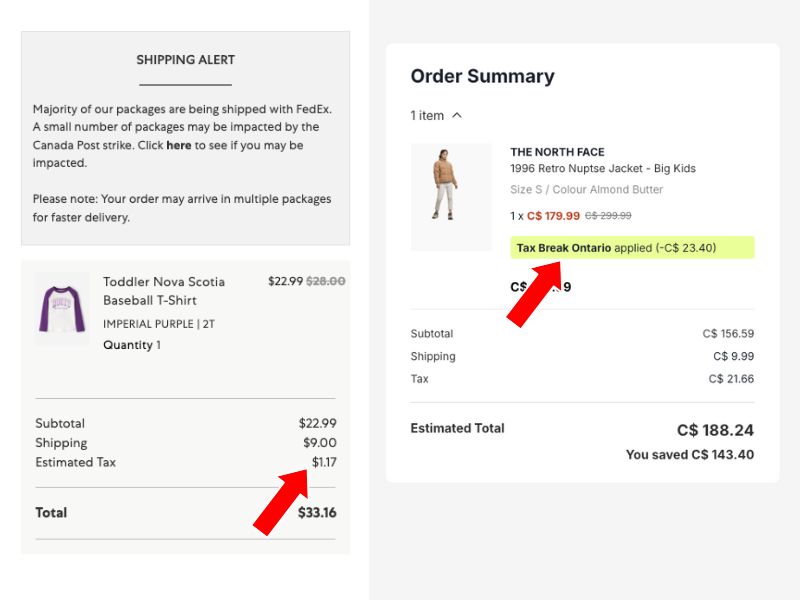 小編已為大家在不同的加拿大網站上實測, 結帳時都顯示沒有稅項,或者有部分減免。不同省份的運輸費用及稅項略有不同,緊記結算時要使用Buy&Ship加拿大倉庫的地址,付款金額也要以最終結算頁面為準喔!