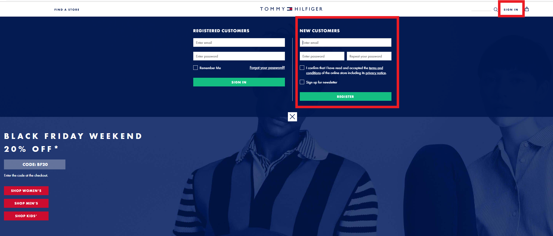 Step2. 到Tommy Hilfiger官網去盡情購物,還不是會員的人記得先註冊。