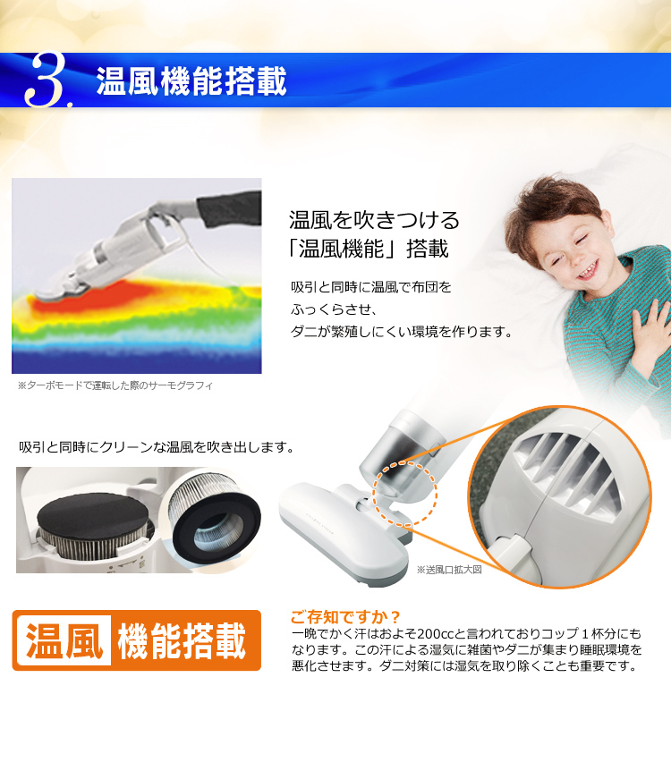 這次IRIS OHYAMA IC-FAC2還升級擁有暖風功能,在強力清潔的同時,快速送出暖風進入床舖內!讓塵蟎在高溫環境難以繁衍。