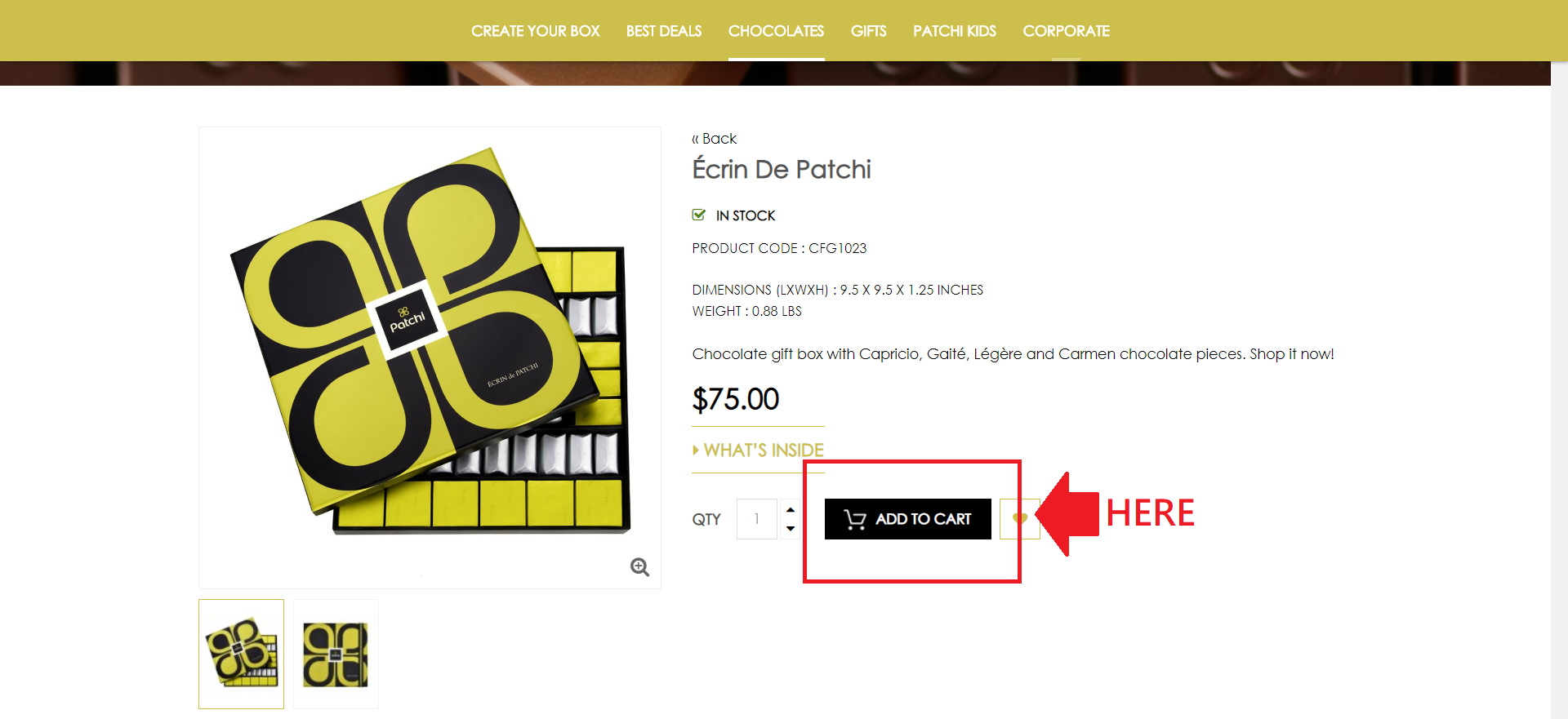 由1974年創建的Patchi著重於每一顆巧克力的完美。對Patchi來說,巧克力並不只是食品,是一種藝術。因此,不僅僅是你看到的巧克力,Patchi給消費者帶來的是一整個對感官經驗上的提升。不僅巧克力製成的成分都是使用最高品質的原物料外,Patchi注入了十分心力,每一顆巧克力都是藝術的創作,是與眾不同的,不管在視覺或味覺上都以絕美的方式呈現。