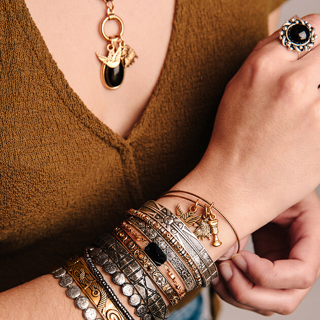 品牌的明星商品就是可以擴充串接的手環,能搭配更換不同主題的金屬吊飾,從星座、瑜珈圖騰、宗教符號等等,大多是細緻的立體雕紋,呈現出各式各樣具紀念意義的圖案,強調身心靈平衡的正能量,讓每個人都找得到自己的最佳歸屬。除了金屬以外也有推出每個月份的專屬誕生水晶系列,與施華洛世奇SWAROVSKI合作的彩色水晶吊飾,繽紛多彩的柔美能量平衡了陽剛的金屬質感,再搭配自己的星座與姓名縮寫吊飾,就是最簡約時尚又獨一無二的個人專屬首飾呀! 手鍊都可以調整大小,周長可調範圍約從16~28公分,還可多個串接起來做多層次的搭配,隨著每日不同的心情與造型來搭配不同主題的金屬吊飾,算是投資報酬率相當高又充滿著創意趣味,除了手鍊之外,ALEX AND ANI 還有戒指(一樣可以調整大小)、項鍊、耳環跟腳鏈可以選購,讓你玩味創意的同時也可輕鬆營造率性風格喔!還有專為男性設計的飾品專區,充滿帥氣個性感與洗鍊簡約風格,無敵百搭呀!