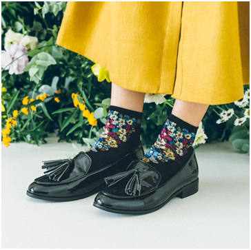 帶有透膚感的薄綿質地,親膚透氣,最適合早春穿搭,而精緻的花朵設計,就像腳踝包裹著花圈一樣,既可愛有存在感,卻又不會過度搶眼。一共有七款色系可選擇喔!