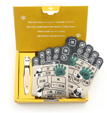 腳底按摩熊貓五指襪禮盒,太太太可愛的動物設計,禮盒內含穴道按摩棒,搭配腳底的穴道圖一起使用,檢康又舒壓!真的是送禮自用兩相宜呀!! 還有企鵝跟貓咪兩種喔!