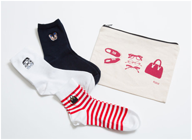 FUDGE×靴下屋 オリジナル刺繍3足セット(ポーチ付) ¥3,564 (約台幣960元)