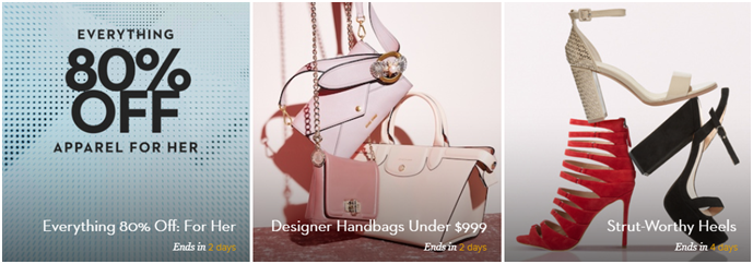 會員制的Gilt 網站,每天會寄email通知,今天有哪些名牌特價商品 ,運氣好的時候就可以用3或5折入手。Gilt最優惠的特價品通常只限時36小時,但常常搶手貨在15分鐘內就被秒殺囉! 超貼心的Gilt還有手機APP,讓你預先設好提醒鬧鐘,時間一到就通知你活動訊息;更棒的是… 不只有過季品,有時還會出現當季新款,只要手腳夠快,絕對能以令人滿意的價格購入!