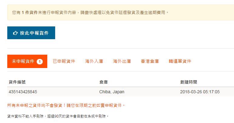 看到貨物到倉庫後,要先去填寫申報貨件,填完後貨物才會出庫到香港集運