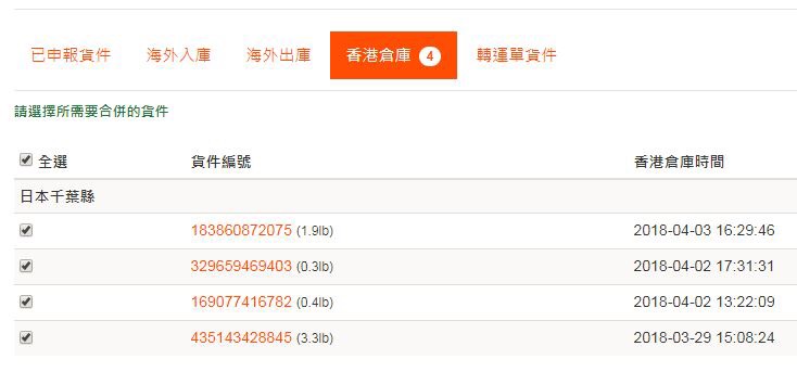 我這次總共有4包貨物,可以等到4包都到香港的時候,再合併訂單一起到台灣,