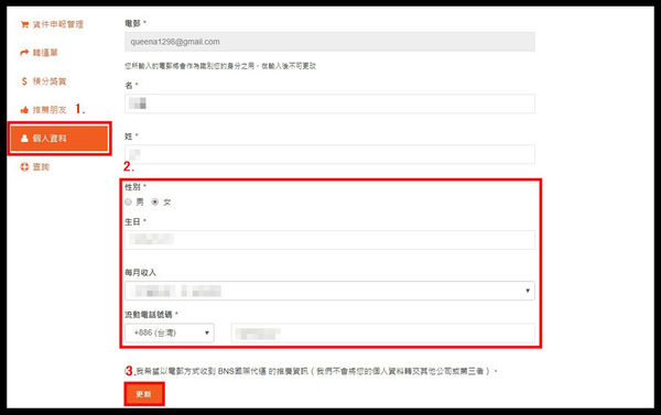 PS.全部皆填寫中文喔!新會員可獲得$120,推薦朋友雙方皆可得$200