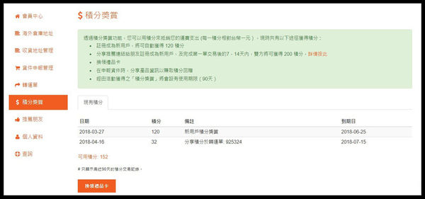 第一次就可以使用積分注意:貨件到達香港倉庫後可免費存放14天,14天後每天每件收費NT$40,最多存放30天。