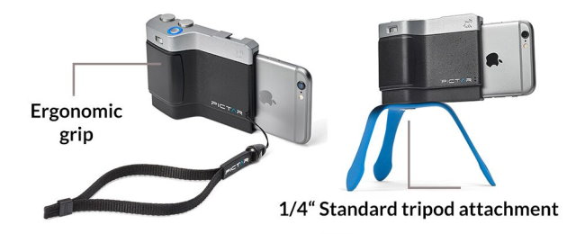 Miggo推出的新一代「相機手柄」Pictar One Mark II,續第一代擁有黑銀復古相機的設計,符合人體工學的仿皮手柄,就算單手使用拍照也很可以。