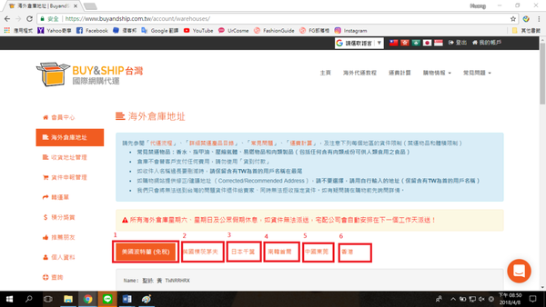 點選需要的倉庫,Buyandship會告訴你,地址該怎麼填