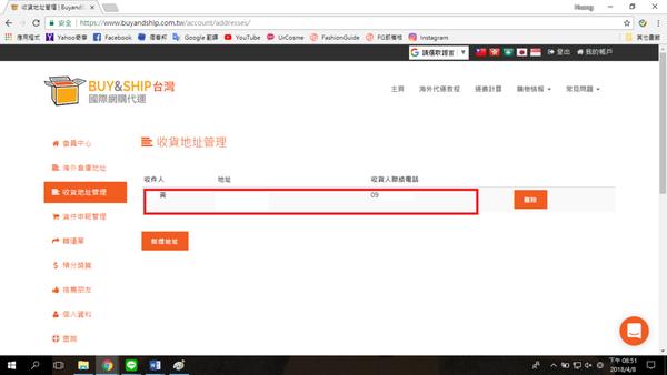在 我的倉庫-收貨地址管理 裡,要編輯的是在台灣的地址