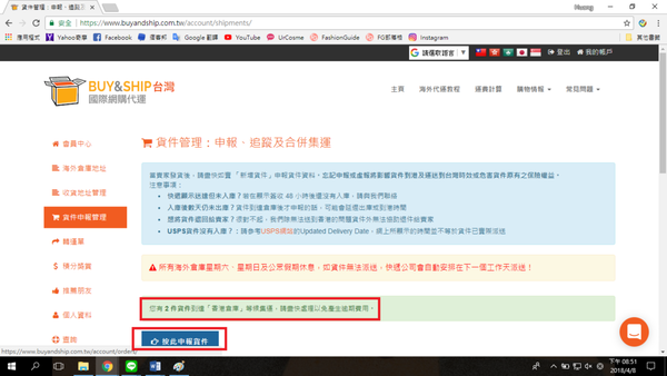 填完單之後就可以慢慢等了,等到所有貨件都到香港倉庫就可以下一步了