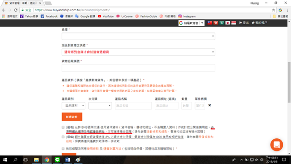 這時候只要把想請Buyandship寄到台灣的品項勾選,依序填好選項