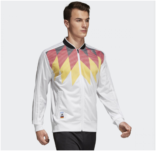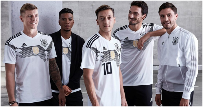 例如世界盃足球賽衛冕冠軍-德國國家隊的全新戰袍,以現代風格重新詮釋了德國1990年舉世聞名的隊服,以經典黑白配色為基礎,搭配斜肩剪裁,球衣正面鑲上金色的世界盃冠軍徽章,象徵新隊服與90年代球衣之間的連結。