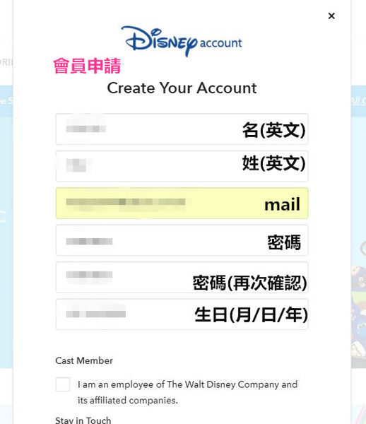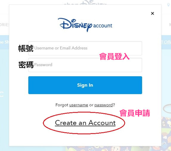 先進入美國Disney Store官網吧!一樣先申請會員,再登入。