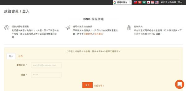 既然要使用BuyandShip國際代運,當然要先到官網看看囉!先點入右上角申請成為BuyandShip的會員。
