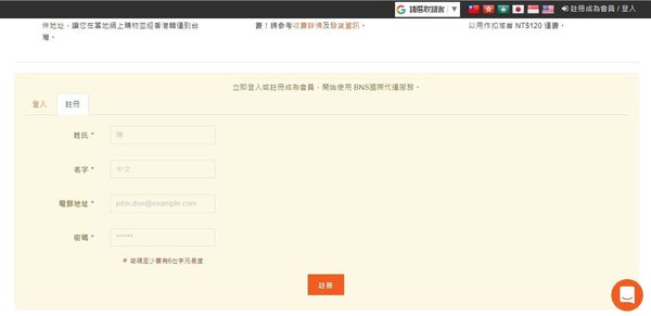 申請會員很簡單,只要填以上資料即可。另外使用國外網站購物,姓名都填英文名比較好。