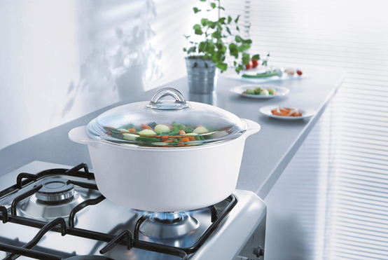 Luminarc餐具材質全部採用鋼化玻璃,經過高溫急速冷卻方法特殊處理過的玻璃產品比一般相同厚度的產品堅固達三倍,100%無孔抗菌表面,使雜質和污垢無法停留;比普通玻璃具2-3倍的超强抗震性能,經久耐用;并能抵禦驟然間135℃溫差變化。近年來更推出陶瓷煮鍋系列,以更完整的品項來面對顧客的需求。