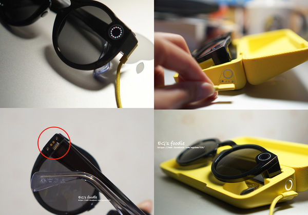 ▲盒內也有附贈充電線可以直接幫眼鏡充電,記得豆腐頭要自己準備。另外從上圖照片中感覺起來眼鏡是兩個鏡頭,其實配戴眼鏡後左邊是按鈕及發光功能的LED、右邊才是攝鏡頭!