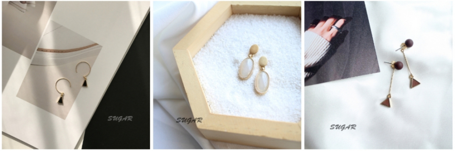 身為有皇冠的淘寶店舖,這家走氣質系的飾品店也是大眾的最愛,乾淨整齊的頁面,只有價格平價,款式卻具有相當高端的質感!各種明星款找不到?在這一定可以挖到寶,雖然飾品多小巧可愛,但戴上還是有畫龍點睛的效果,大量的幾何元素,搭上學生價,誰能拒絕得了?同樣地,Sugar的耳環類也分作耳夾及耳針款,真的太福了!