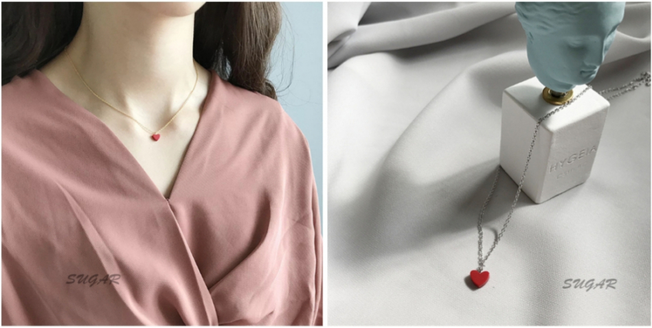 ⇨ 日本明星同款的紅色小愛心頸鏈,分別有金銀兩色鏈條可以選擇。