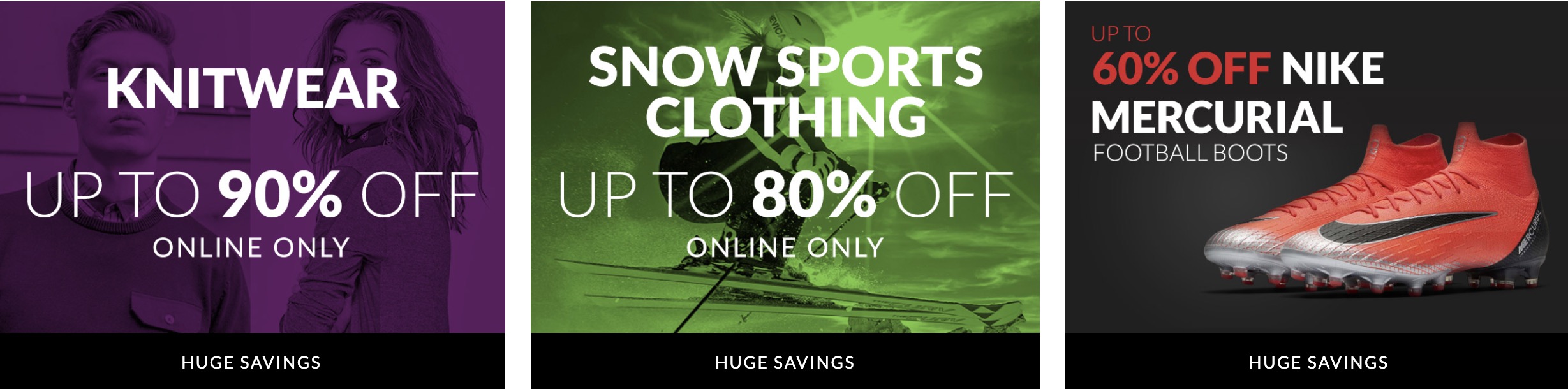 Sports Direct官網隨時都會有各大品牌在這進行促銷優惠,而現在OUTLET專區可以鎖定你想要的品牌去尋找優惠,超級方便!此外還有低至三折weekly offer專區,每周都會推出不同款式進行三折優惠,所有鞋款都有著令人傻眼貓咪的折扣價,如果有看到喜歡的鞋款千萬要守住限定時間阿!