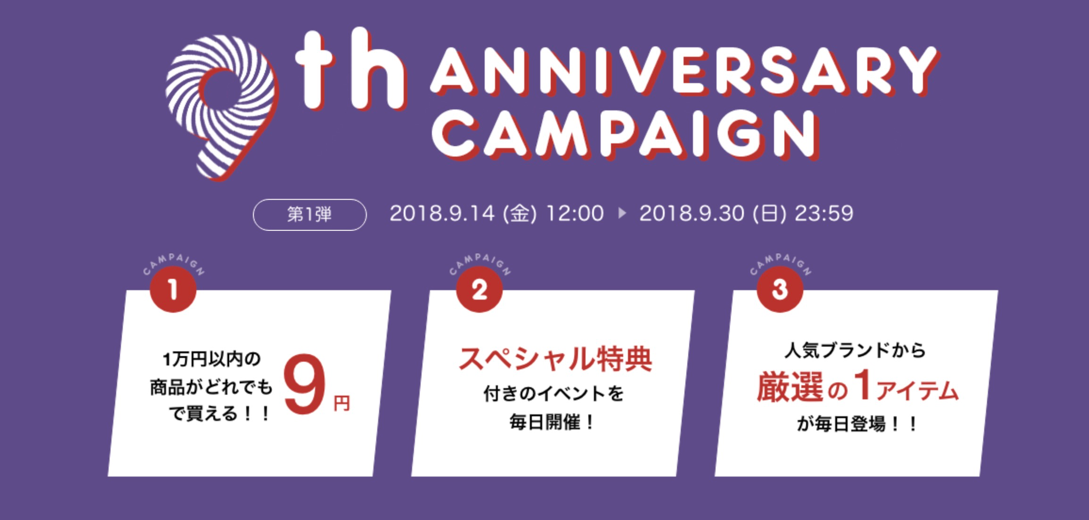 <買起來> 即日起至9月30日止,只要消費滿15,000日幣即可獲得抽獎機會,GLADD會抽出99位超級幸運兒獲贈“日幣9円優惠券”,收到的朋友可在10月15日當天使用優惠卷,即可以日幣9円在網站購入任何日幣10,000円以下的商品喔!
