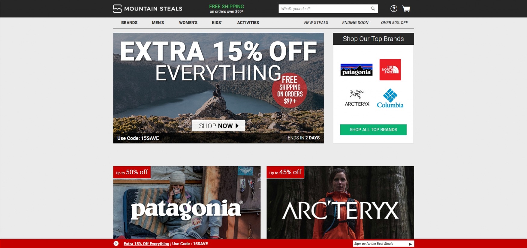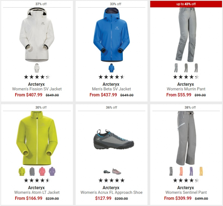 Mountain Steal是戶外運動用品的折扣專門網站,大家最關注的Arctery’x、Columbia、The North Face及Marmot等都可以在這邊找到特價商品,Mountain Steals雖然在台灣消費者中知名度並沒有那麼高,但是網站時常祭出各種品牌的超低價折扣,只能說不多來逛逛實在是你的損失阿!