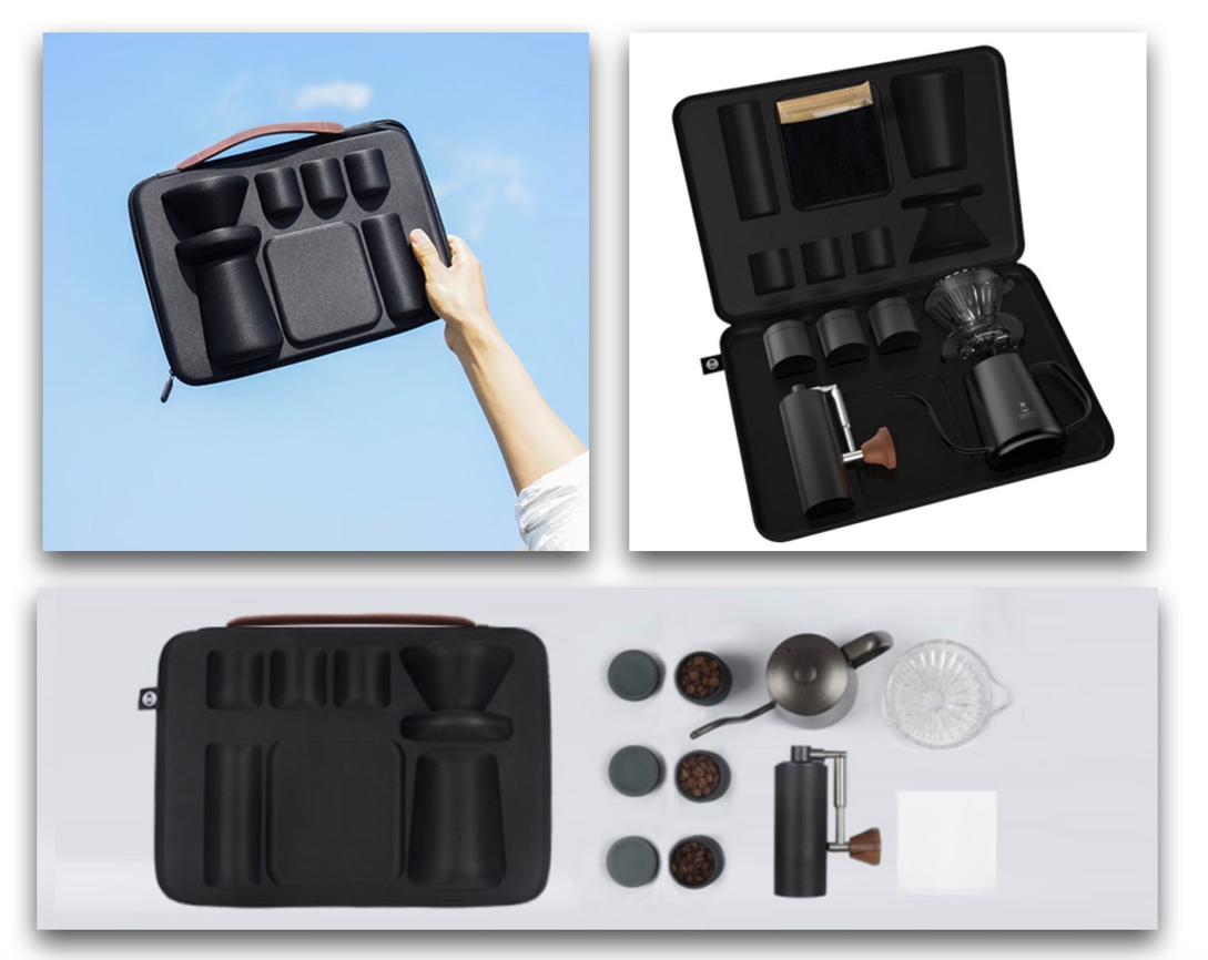 如果你是熱愛香濃純粹的咖啡魂,是否也會有因為外出無法喝到自己手沖咖啡的無奈呢!?如果是,這套精巧的旅行用手沖咖啡壺組,絕對是你一定要入手的必敗配備呀!造型相當時尚的便利包,整組只有約手提電腦13吋的大小,可以手提也可以放背包攜帶,露營、野餐都適合。麻雀雖小五臟俱全,內含不鏽鋼手沖壺、手沖濾杯、磨豆機、三個金屬特製咖啡豆保存罐以及濾紙,簡約設計的好品質,絕對值得收藏呀!