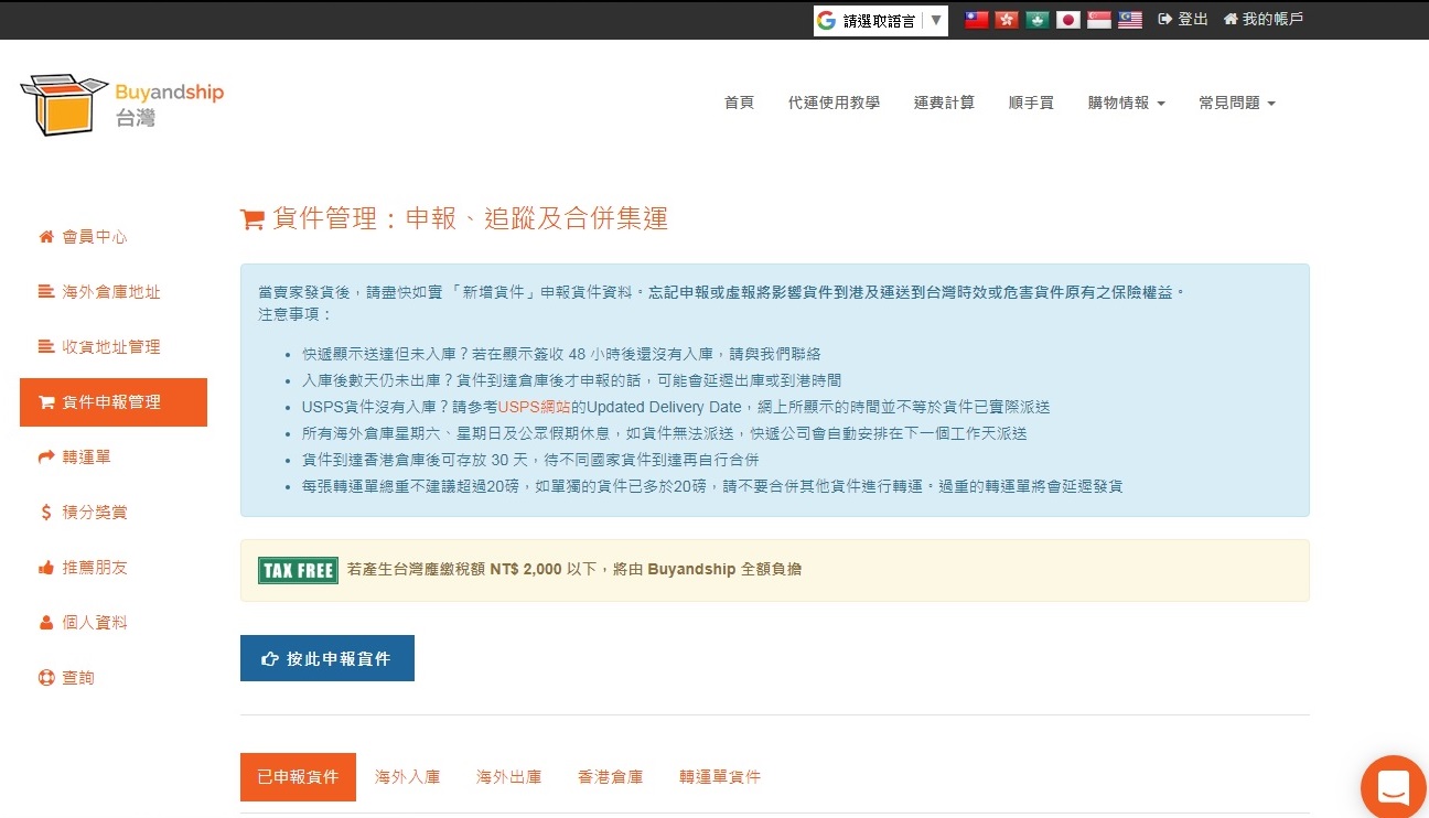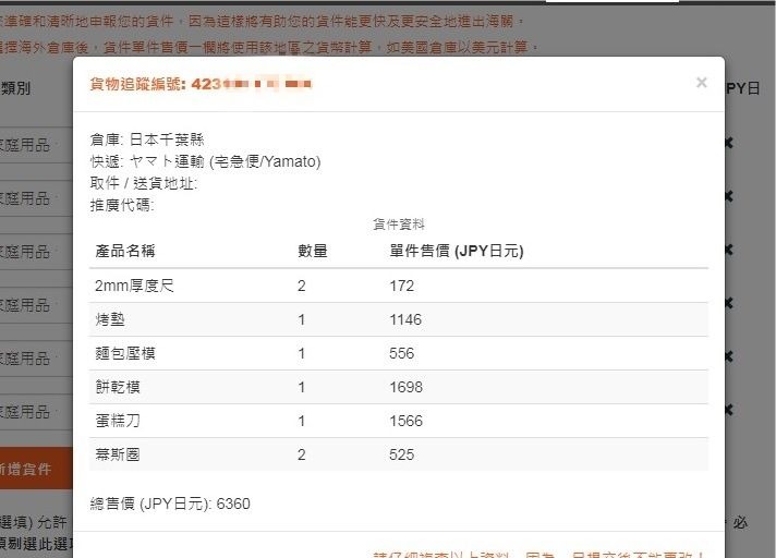 首先就是填入你是寄去哪個倉庫以及貨物追蹤編號(購物網站寄出的mail中會有)