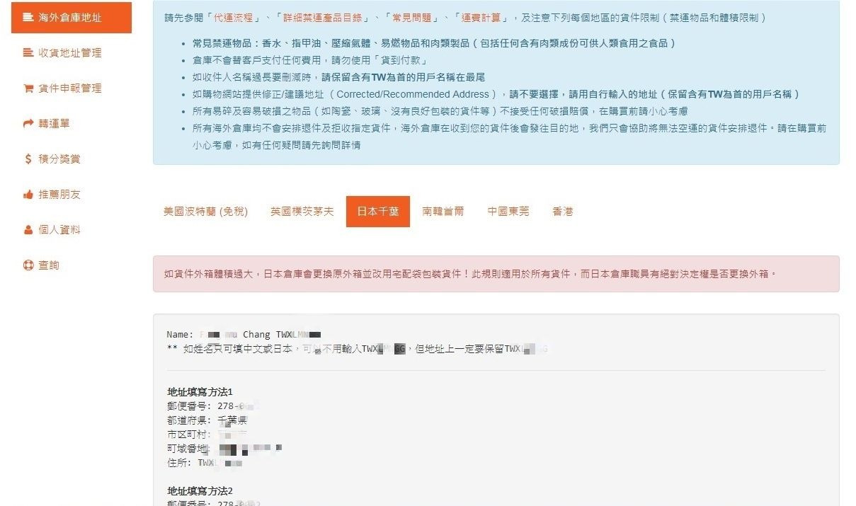 用日本集運的話~名字等等還是要去另外一個網站翻譯XD