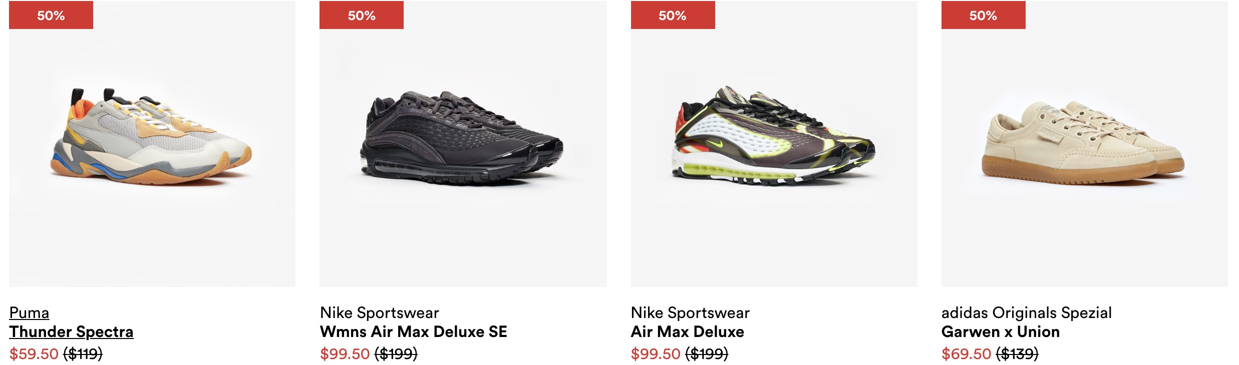 最近想買鞋的朋友,可以上Sneakers n Stuff 瞧瞧,網站正祭出Sale 折扣低至三折,好多品牌都有優惠,包括 Adidas、Nike、Vans、Converse 等等!一雙 Adidas Tubular Nova、Alphabounce、Campus、Swift Run 等款式最低只需要 US$34就能入手,折扣這麼優當然有許多是斷碼款,如果有看到你的尺寸就要快手下單,遲一步就沒得買了!
