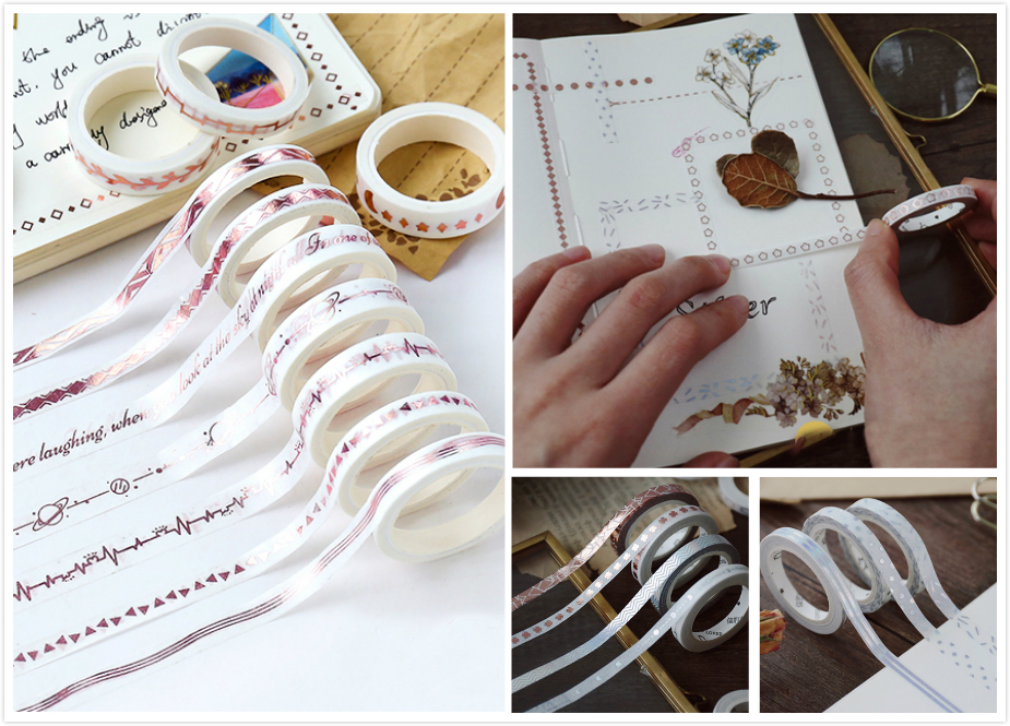 還有超夢幻的玫瑰金屬色調紙膠帶,並且在筆類方面的選擇也是相當多樣,書寫控千萬小心失心瘋!