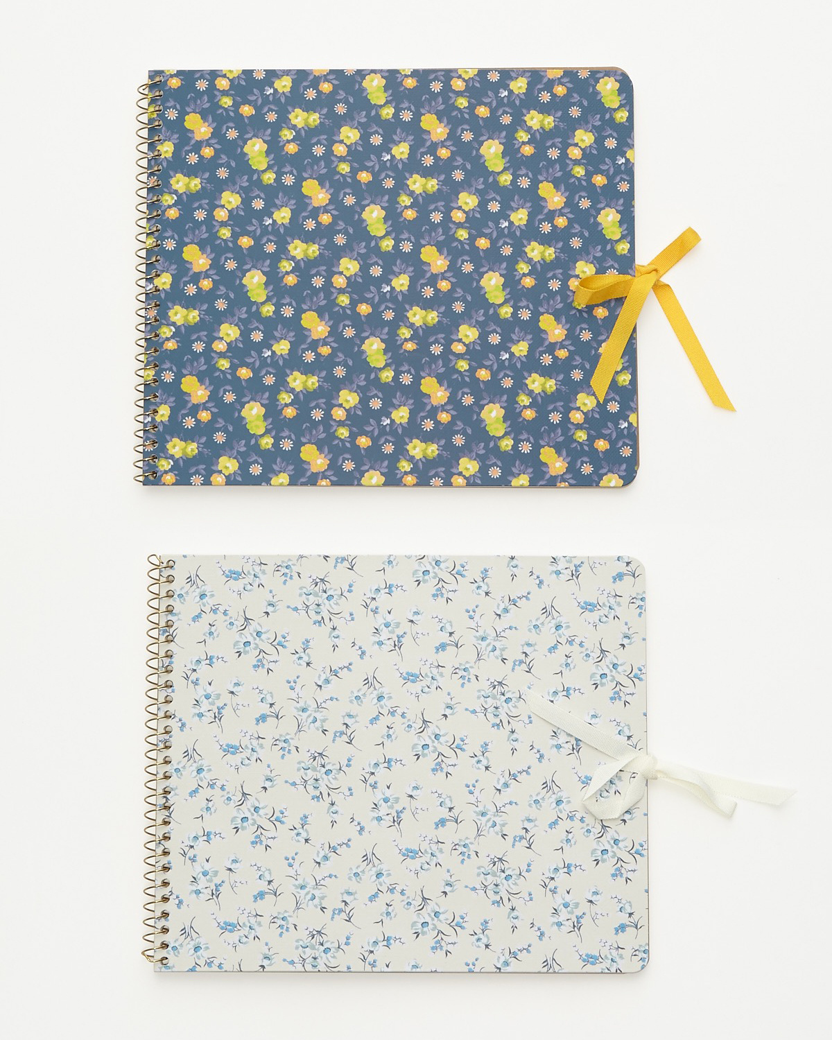 藍色/象牙色花卉封面筆記本,以小碎花圖案的紡織物做成書皮,充滿復古風的質感,內頁也對中間的部分做復古處理,像陳舊的紙張,送給文青風的女孩再好不過了。