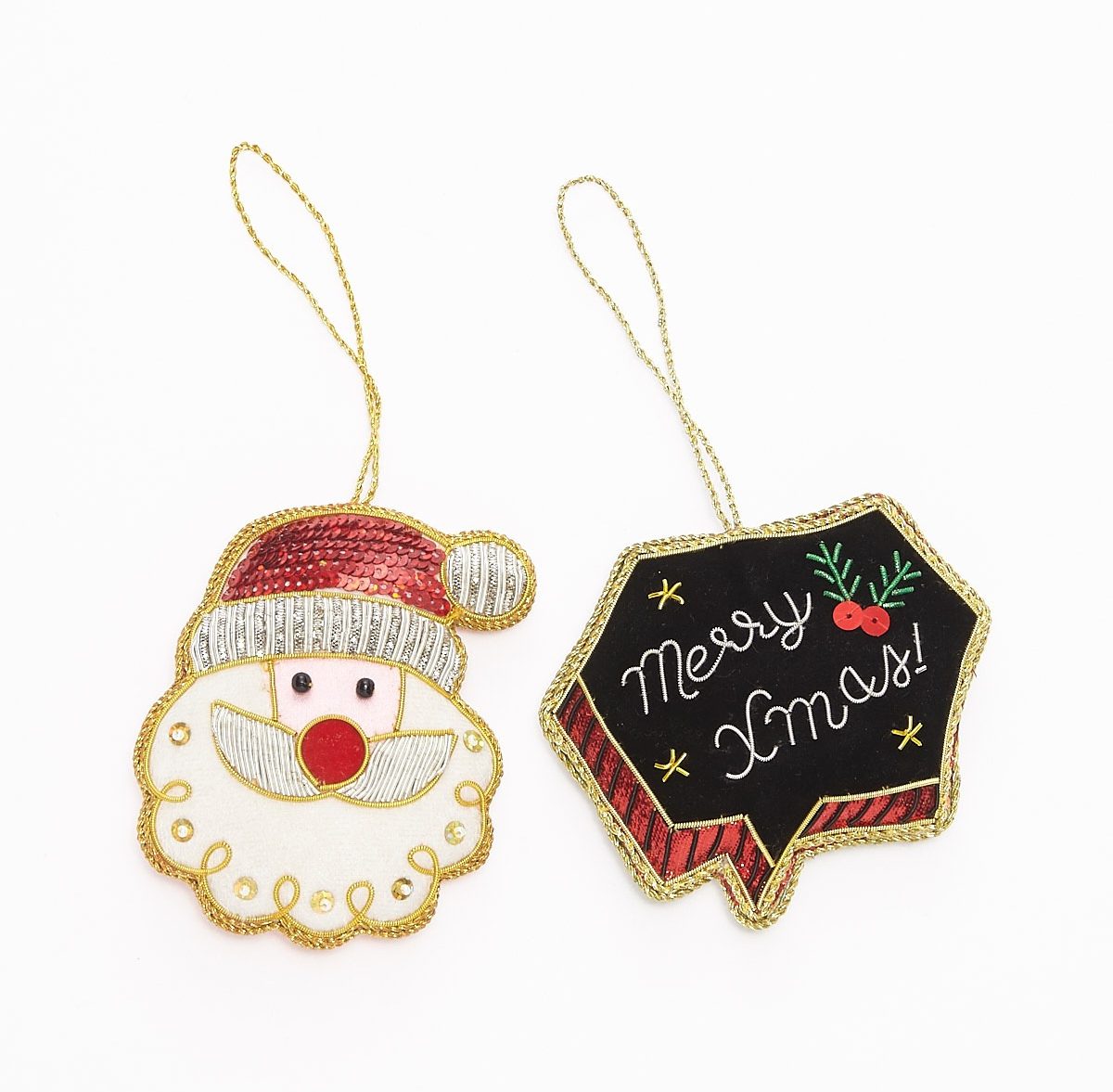 聖誕老人/聖誕刺繡裝飾,採用印度西北部傳統技術“苗圃刺繡”製作而成的美麗裝飾品,它擁有手工藝品的特色和印度的明亮色彩,使用珠子和亮片、金色和銀色線條,讓人物和字母閃耀、脫穎而出。