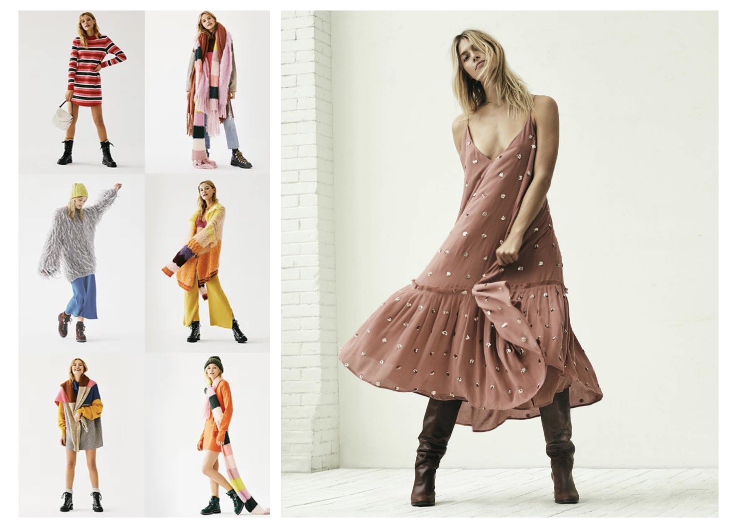 針對18-40歲的都市女孩、輕熟女所設計,風格帶一點波希米亞風的隨性,兼具甜美性感的少女韻味,充滿創意設計與自由態度是品牌的靈魂所在,巧妙精緻的細節如鏤空蕾絲、印花、珠嵌、絲繡、色染等等,都展現了Free People女孩的熱情積極、浪漫自信與勇敢做自己的時尚精神。貫徹UO集團的風格,旗下每個子品牌都是一站式的購物網站,Free People自然也少不了保養品、飾品、內睡衣與運動服專區,完整打造專屬Free People風格的系列商品,如同品牌名稱「自由」傳遞的一點波西米亞,一點微嬉皮,還有一點少女的味道。