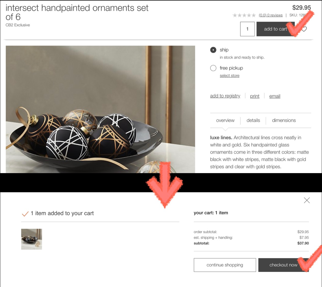Step 3. 將心儀的商品加入購物車 add to cart後,可以選擇繼續購物continue shopping,或是選擇結帳 checkout now。