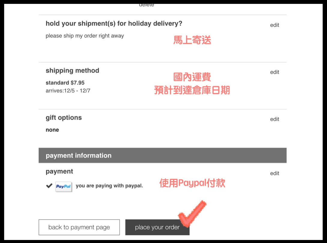 Step7. 最後點選確認購買 place your order,這樣就完成囉!