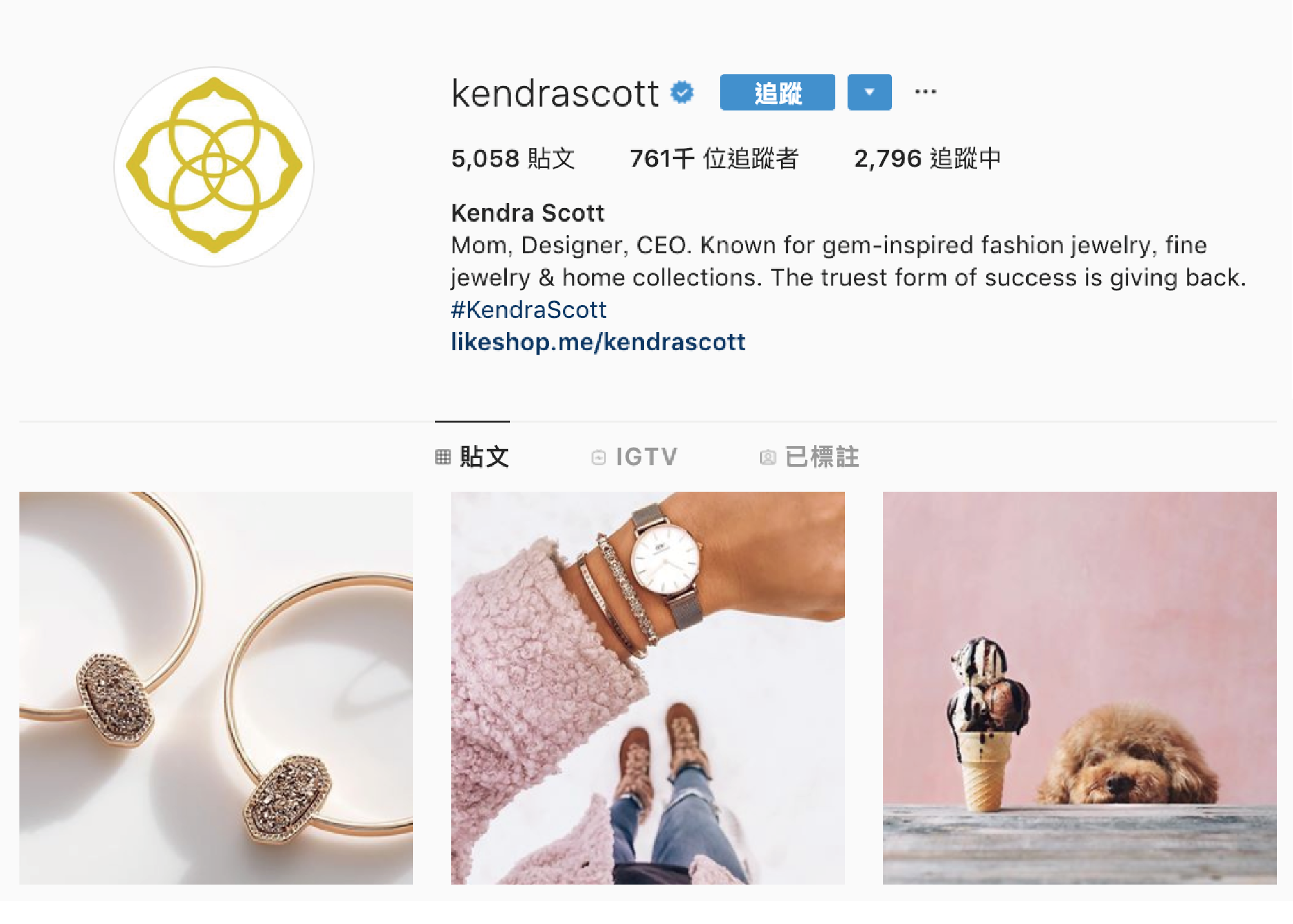 官網設計真是美到剁手指,而且使用者介面超棒!還可以追蹤Instagram,看充滿正能量的設計珠寶: @kendrascott