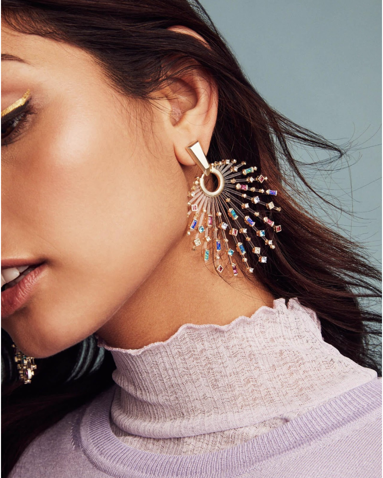 ▲Oster Gold Statement Earrings In Smoky Crystal / $ 130 USD
