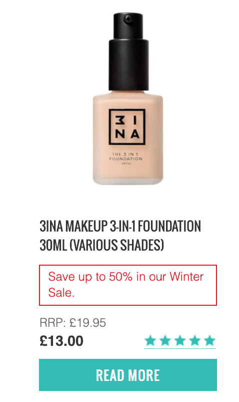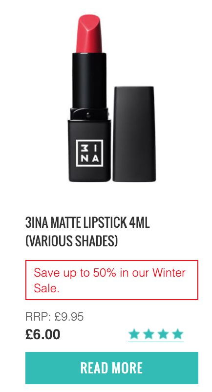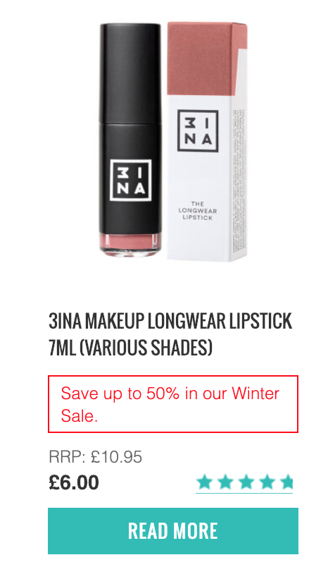 最近在台灣剛上櫃,受到大家喜愛的3INA,這裡也有!還有冬季促銷活動,最低5折~快來尋寶看看在櫃上被掃購一空的色號這裡有沒有吧!