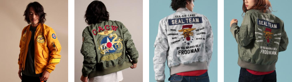 超有味道的MA-1飛行夾克,許多軍事風格的廠商都有出品的經典系列,可見這種復古式美感在美國甚至全世界的人心中,留下多深印象。複合老舊徽章、較多的文字繡在上面,以往的設計並不以簡約為主,奇妙的是你從來不覺得擁擠混亂,在視覺掌握上小編更加喜愛復刻風格。