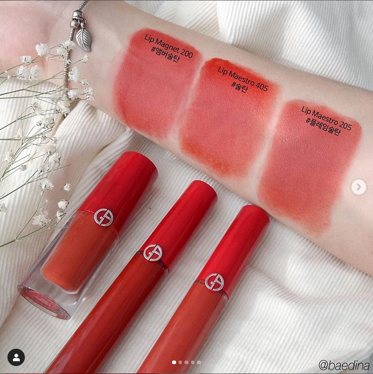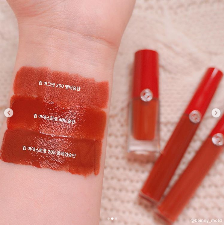 首先是 Giorgio Armani在繼國內外都紅透了的405超夯唇彩,在中日韓皆賣到斷貨後,今年再推出了「奢華絲絨訂製唇萃#205」、「奢華訂製柔霧唇露#200」,更被韓妞們譽為比405更顯白的必收色號,這兩款更是韓國專屬限定色,不僅色調超美超顯白,更是限定色,韓國部落客的IG上是一整片的洗版呀~( #립마에스트로205、#립마그넷200)
