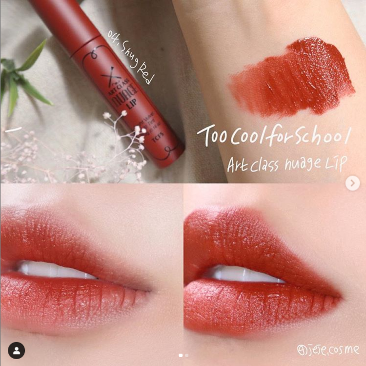 如果像小編一下口袋空空捨不得花錢買高價的Giorgio Armani,那一定不能錯過接下來這款被稱為平價版GA#405的超美唇彩,就是來自Too cool for school的雲朵柔霧系列唇釉,其中的#04色號熾熱緋紅(snug red)爛番茄色也是超美超級不能錯過 !