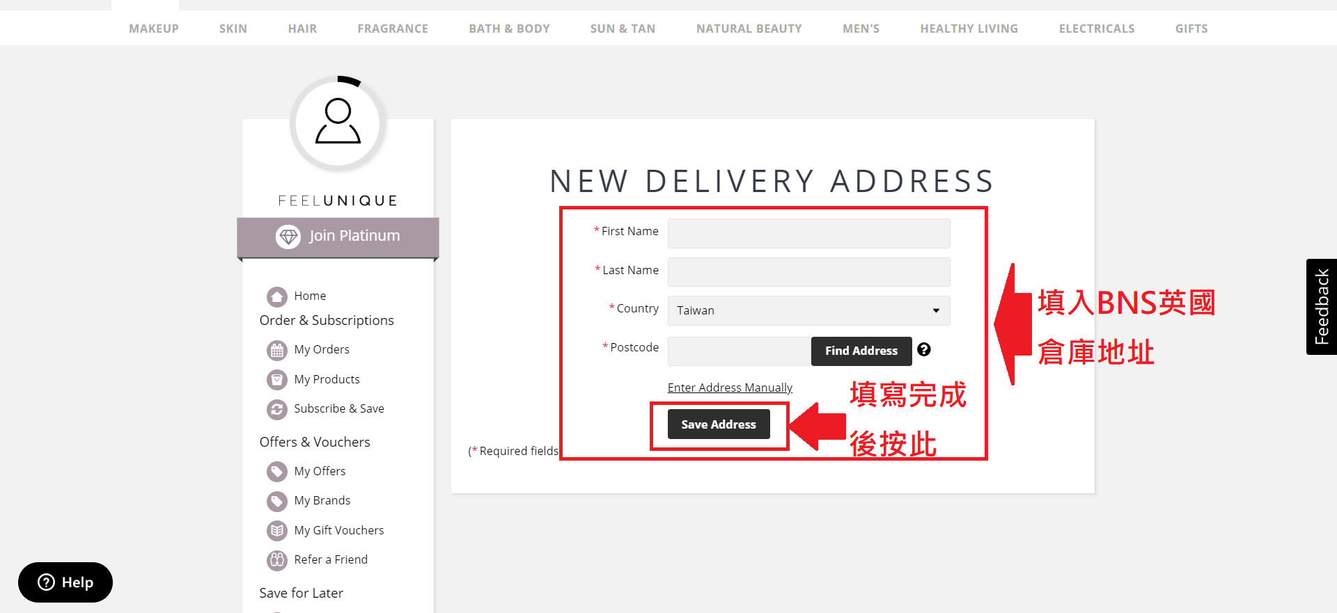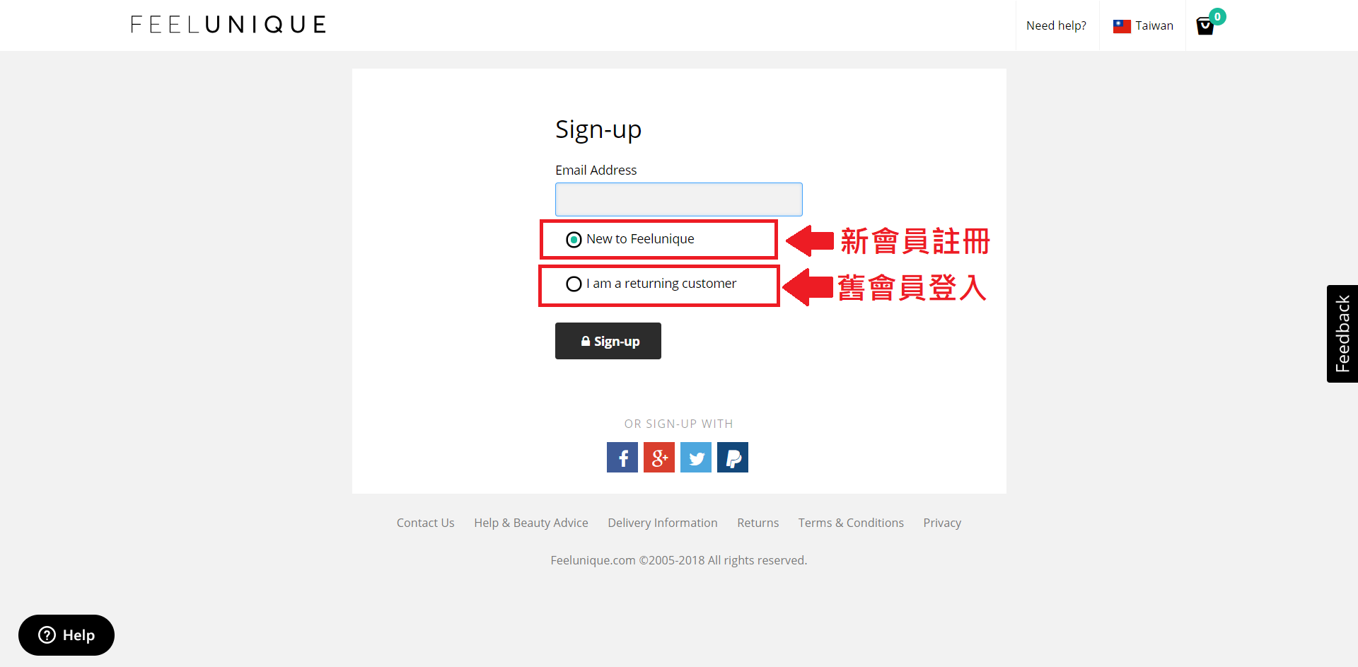 STEP 2.進入Feelunique官網,接著到左上方點選「SIGN IN」
